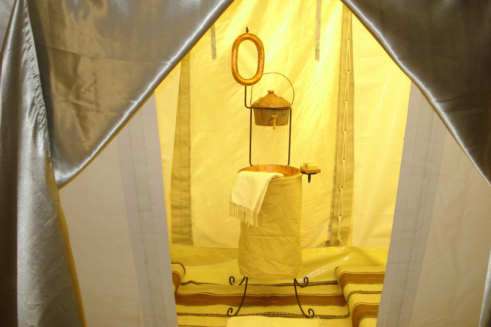 The tent features premium bedding and a comfortable sofa, ideal for relaxing after a day of desert adventures. The fully equipped sanitary facilities include a traditional bucket-and-ladle shower, a handcrafted washbasin, and eco-friendly dry toilets with wood shavings.